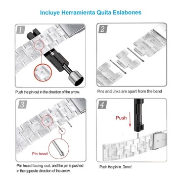 Incluye herramienta de extracción de eslabones para ajustar el tamaño de la correa